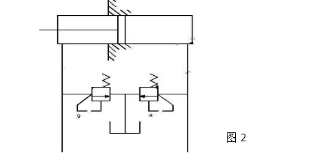 1.選擇蓄能供回路和過載保護回路(如圖1)設(shè)置蓄能器6可以在一定時間內(nèi)保持系統(tǒng)液壓力動態(tài)平衡,同時其采用二位二通電磁閥5可起到斷帶保護的作用,圖示力油流動方向為啟動后壓力油流方向,此時,蓄能器蓄能。啟動階段,由于系統(tǒng)壓力較高,此時二位二通電磁閥7應(yīng)斷開,4YA得電,啟動完畢后接通。
